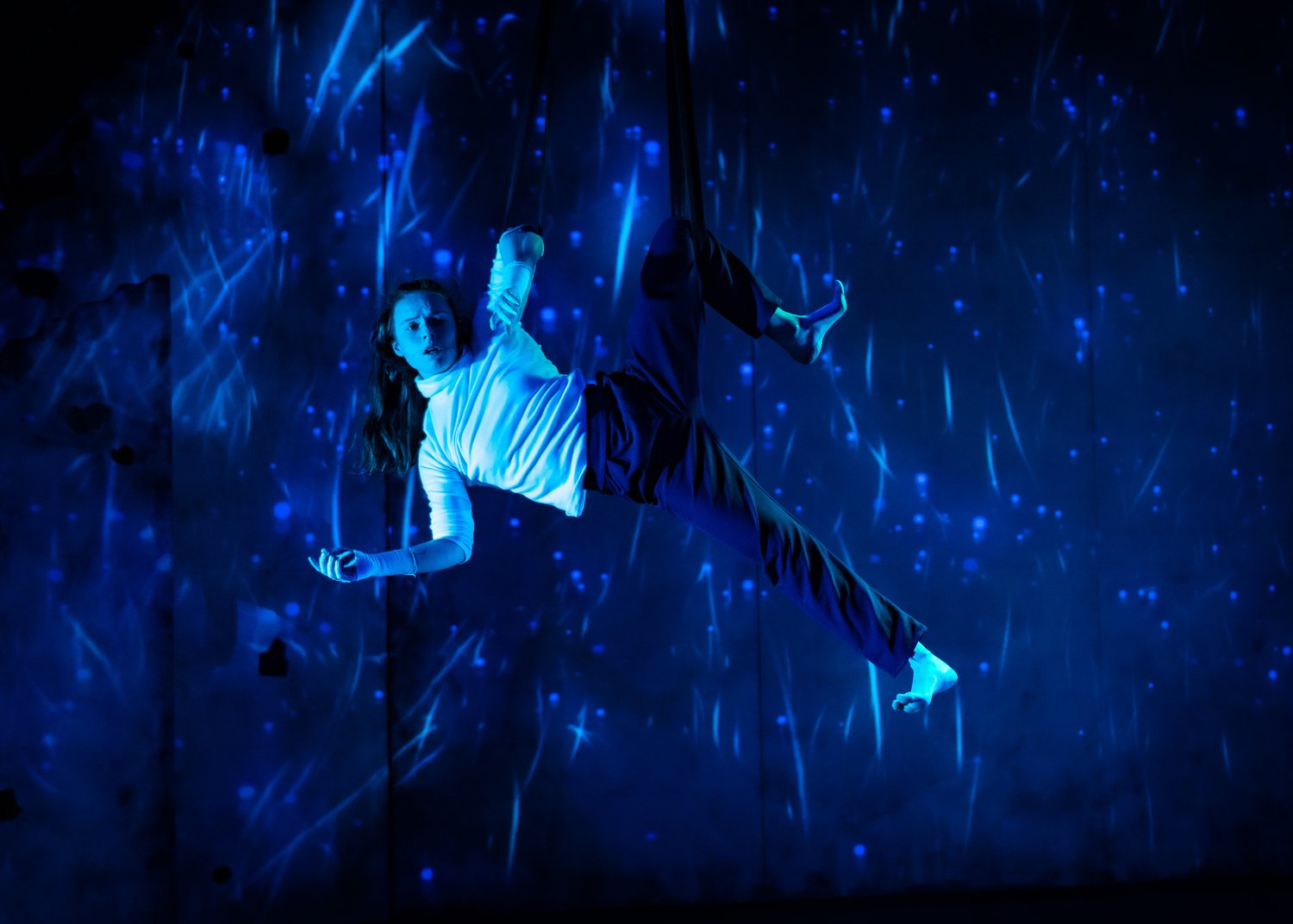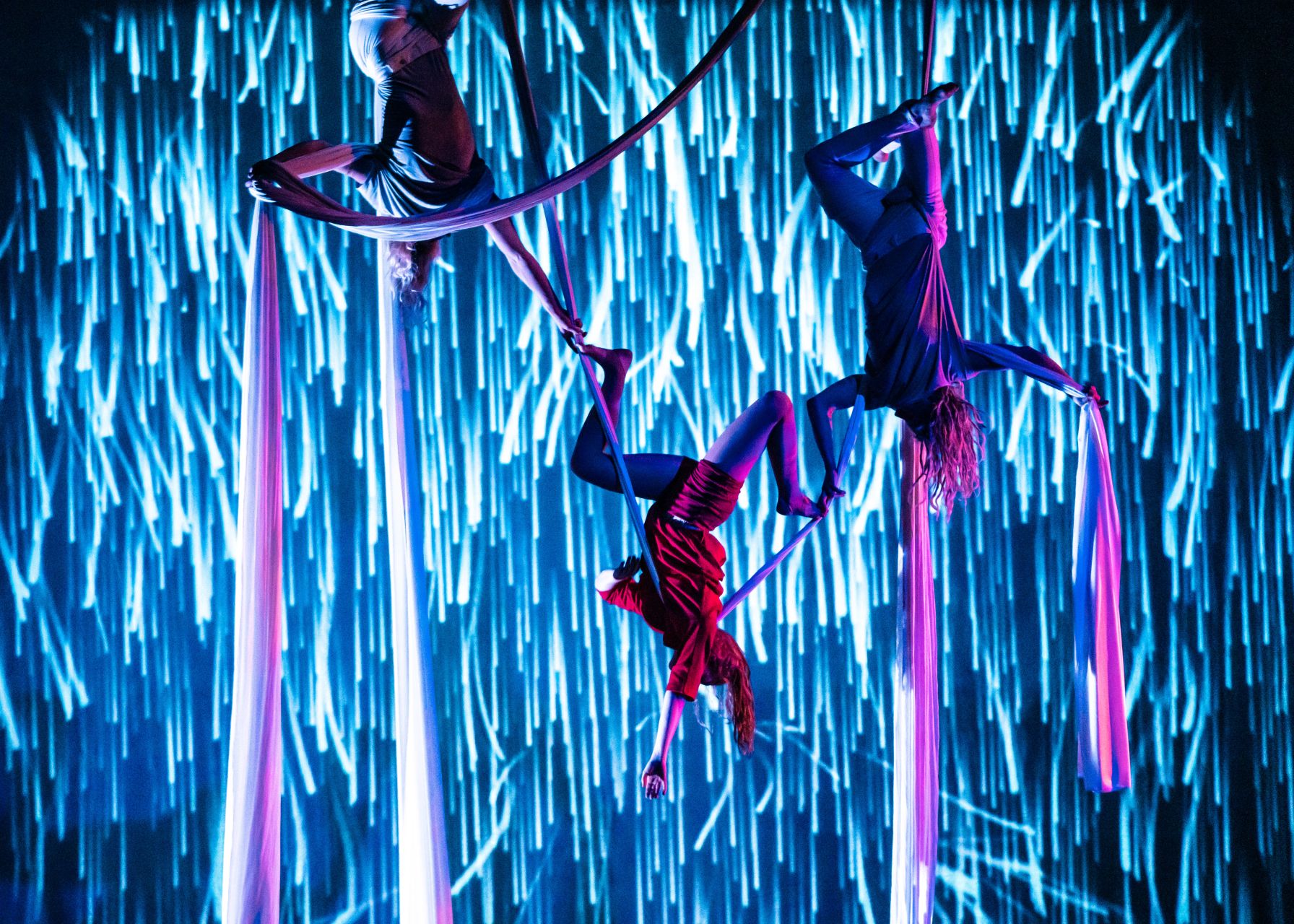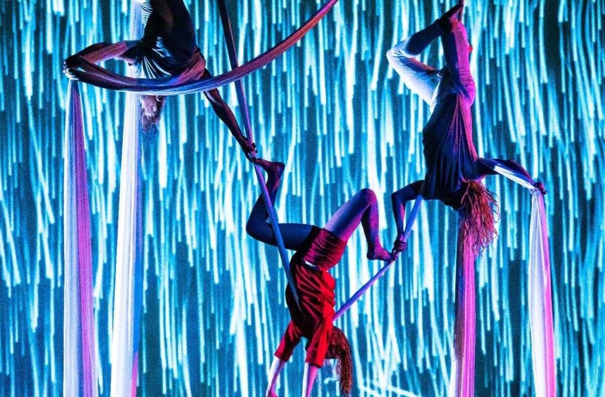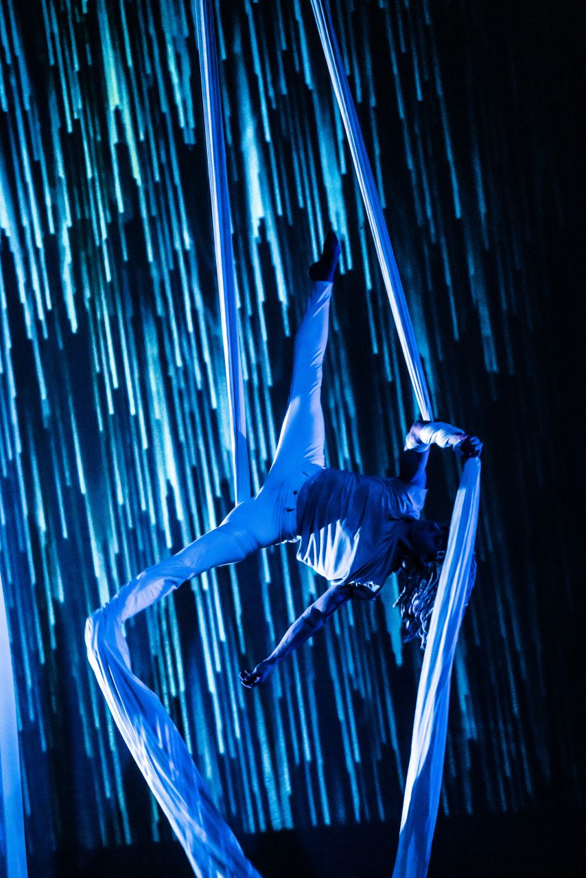 Aerial circus theatre with Hikapee. Icelandic folklore meets creative technology.